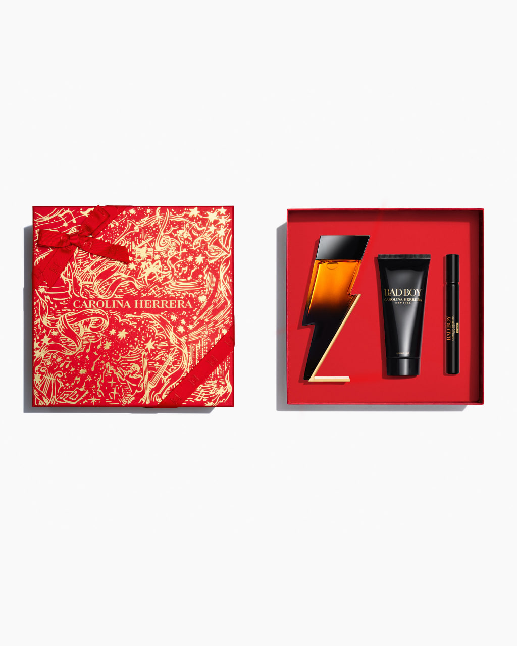 Bad Boy Elixir is a sophisticated and highly concentrated elixir reminiscent of the smoldering heat after a turbulent storm. This three-piece gift set contains Bad Boy Elixir Eau de Parfum (100 ml), Mega Spritzer (10 ml), and the invigorating shower gel (100 ml), which gently cleanses the skin, leaving it feeling soft and supple with a subtle fragrance.