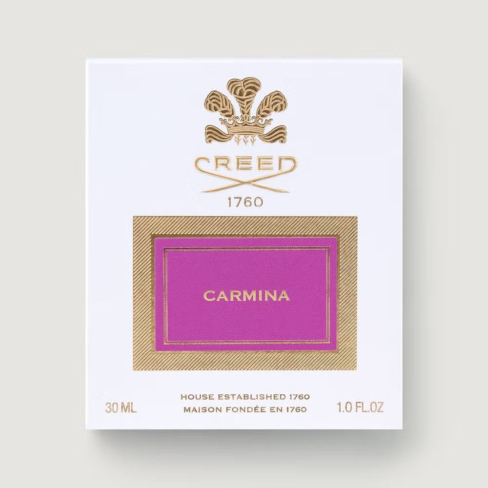 Floral Amber, Woody, Musk. Carmina is a sensual celebration of feminine allure, captured through exquisite Rose de Mai and luxurious cashmere wood, smouldering over a seductive base of amber and musk.