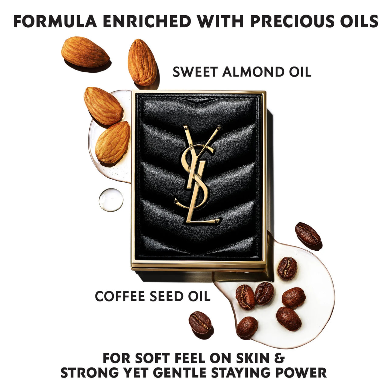 A couture eyeshadow quad with Satin, Matte, Metallic, and Shimmer finishes for iconic YSL eyes. High pigment payoff in a soft, oil-enriched formula for up to all day wear.