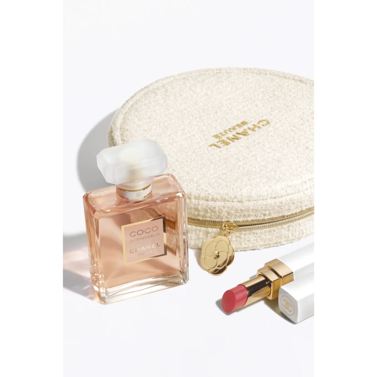 COCO MADEMOISELLE Eau de Parfum and ROUGE COCO BAUME 918 MY ROSE lipstick come together in a travel-friendly pouch. The sensual fragrance paired with the naturally luminous lipstick creates a sophisticated look. This set is presented in a convenient travel pouch.