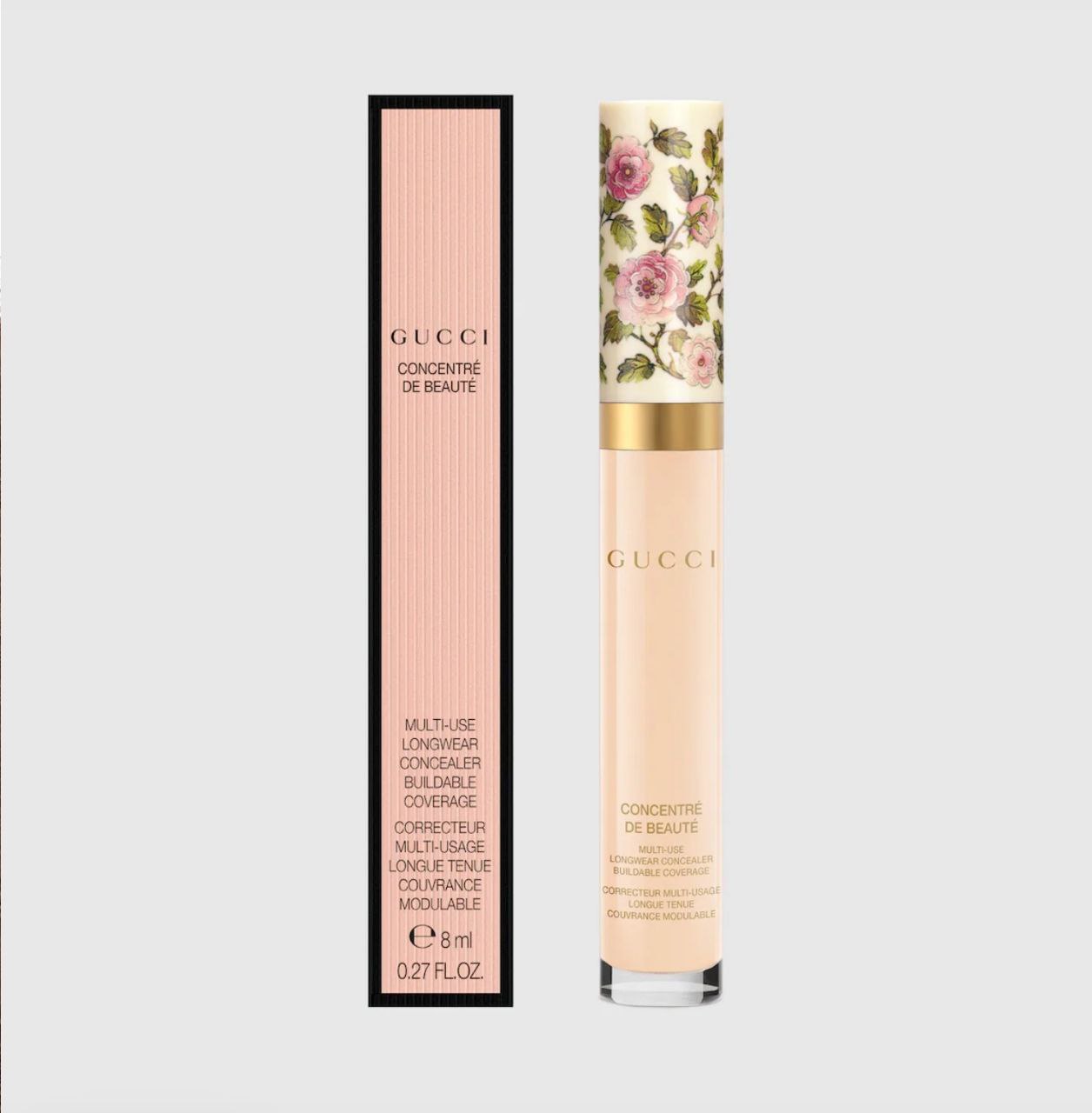 A lightweight concealer that effortlessly blends for an even second skin finish. Concentré de Beauté easily adapts to diverse skin tones and types, providing a seamless solution for all beauty needs. Powered by skin-caring ingredients, the long-wear formula also offers a natural blurred finish that smooths without weighting on the skin. Designed as a multi-use tool, Gucci Concentré de Beauté can be applied with fingers, brushes, or sponges, thanks to its flexible texture. To achieve a full Gucci look, pair it with Gucci Éternité de Beauté, the House’s 24-hour wear, transfer-proof foundation.