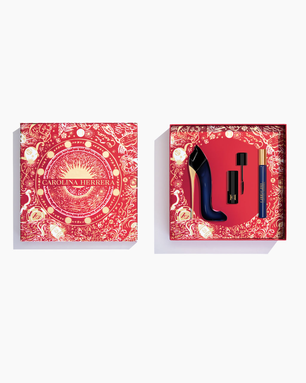 Good Girl is a bold blend of dark and light elements, a daring yet sophisticated fragrance inspired by Carolina’s unique vision of the modern woman’s duality. This three-piece gift set includes a Good Girl Eau de Parfum (80 ml) and a Mega Spritzer (10 ml), plus a smudge-proof Fabulous Eyes Mascara that delivers intense volume, lift, and curl, lasting up to 24 hours.