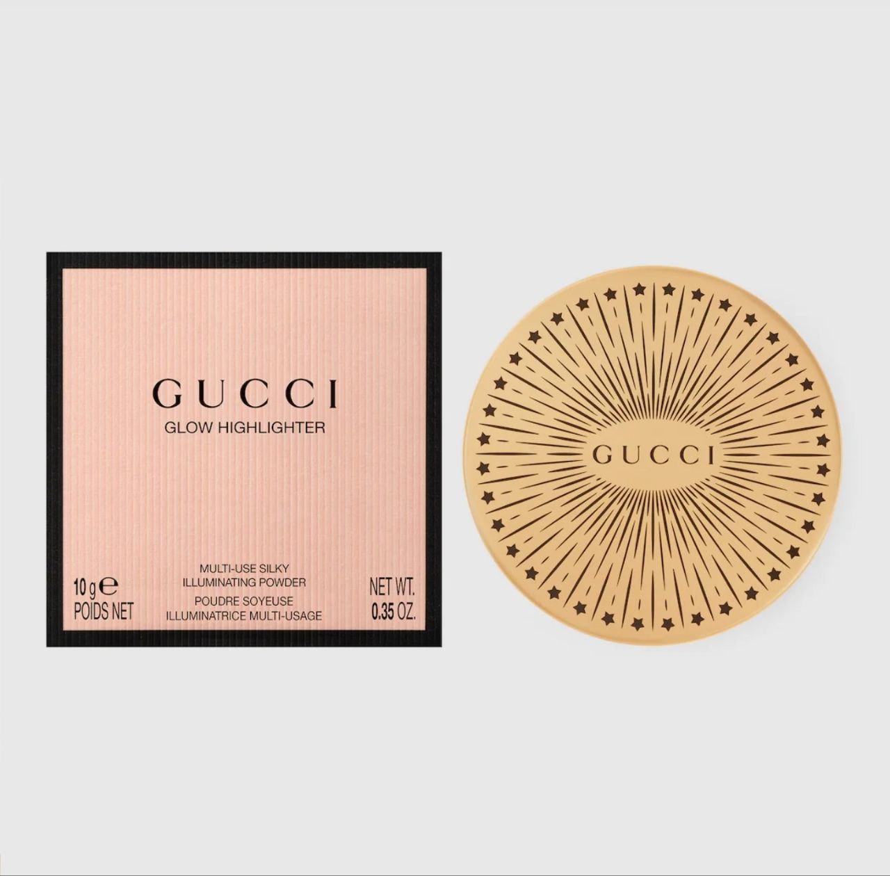 A multi-use silky illuminating powder that glides effortlessly on the skin for a true-to-you glow. Gucci Glow Highlighter adapts to diverse skin tones and types, leaving the skin with a hydrating feeling during wear. Layer after layer, the formula varies from a subtle to a bold silky glow, and It can be worn on the face, eyes, body, and lips for multiple makeup results. The powder is encased within a round golden compact adorned with a star and line pattern, with the Gucci name at its center. At the same time, the highlighter itself is nestled within a pink inner trim and has an inside mirror for an on-the-go application.