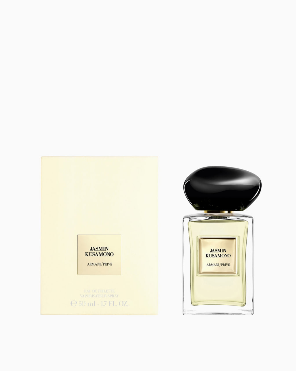 Discover the Armani Privé fragrance that contains the irresistible and stark contrast between the multiform delicacy of Arabian jasmine and the ancestral Japanese tradition of Kusamono. Jasmin Kusamono expresses Giorgio Armani’s passion for floral art and for Kusamono, a Japanese floral composition technique inspired by the ancient art of bonsai. Like Kusamono, which must be taken care of to keep its beauty intact, this fragrance is the perfect execution of a floral work of art, minimalist and multifaceted at the same time. A watery and crystalline fragrance that evokes the smell of jasmine petals that open at dawn in contrast with the woody base notes that give the fragrance a persistent luminous trail. A watery and crystalline fragrance that evokes the smell of jasmine petals that open at dawn in contrast with the woody base notes that give the fragrance a persistent luminous trail. The new fragrance is contained in the iconic square Armani Privé bottle, which shows off a more modern and luminous appearance in the “Les Eaux” collection. The rounded lines of the glossy black lacquered cap create a contrast with the essential elegance of the square bottle. Jasmin Kusamono’s silent strength is also evoked by the delicate green hue, like a drop of water flowing into Jasmine Kusamono.