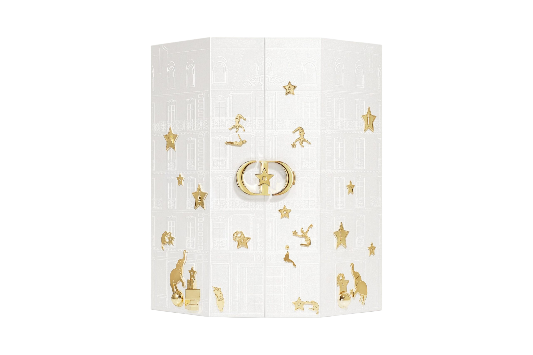For the holiday season, the House of Dior presents a magical Dior Advent Calendar that recreates the facade of the historic boutique at 30 Avenue Montaigne, adorned with dazzling ornaments to mark the occasion. It opens to reveal the magic of the Circus of Dreams, with enchanting motifs designed by artist Pietro Ruffo: beneath Monsieur Dior’s shining lucky star, a parade of characters come to life, inspired by his love for the joyful, colorful world of the circus.