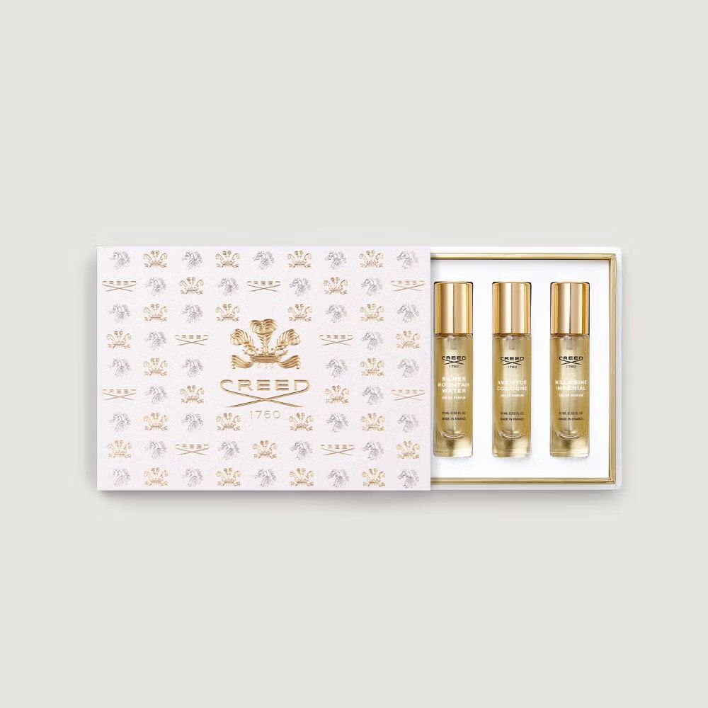 Transcend all expectations with the ultimate fragrance gift set for men from The House of Creed, masterfully crafted for those who appreciate the extraordinary. This unrivalled collection is presented in an exquisitely adorned gift box that honours the house’s unique equestrian ties and rich tailoring history. Containing coveted classics Aventus, Aventus Cologne, Green Irish Tweed, Silver Mountain Water and Millésime Impérial, each in a deluxe 10ml size, this sought-after set is the grandest of gestures