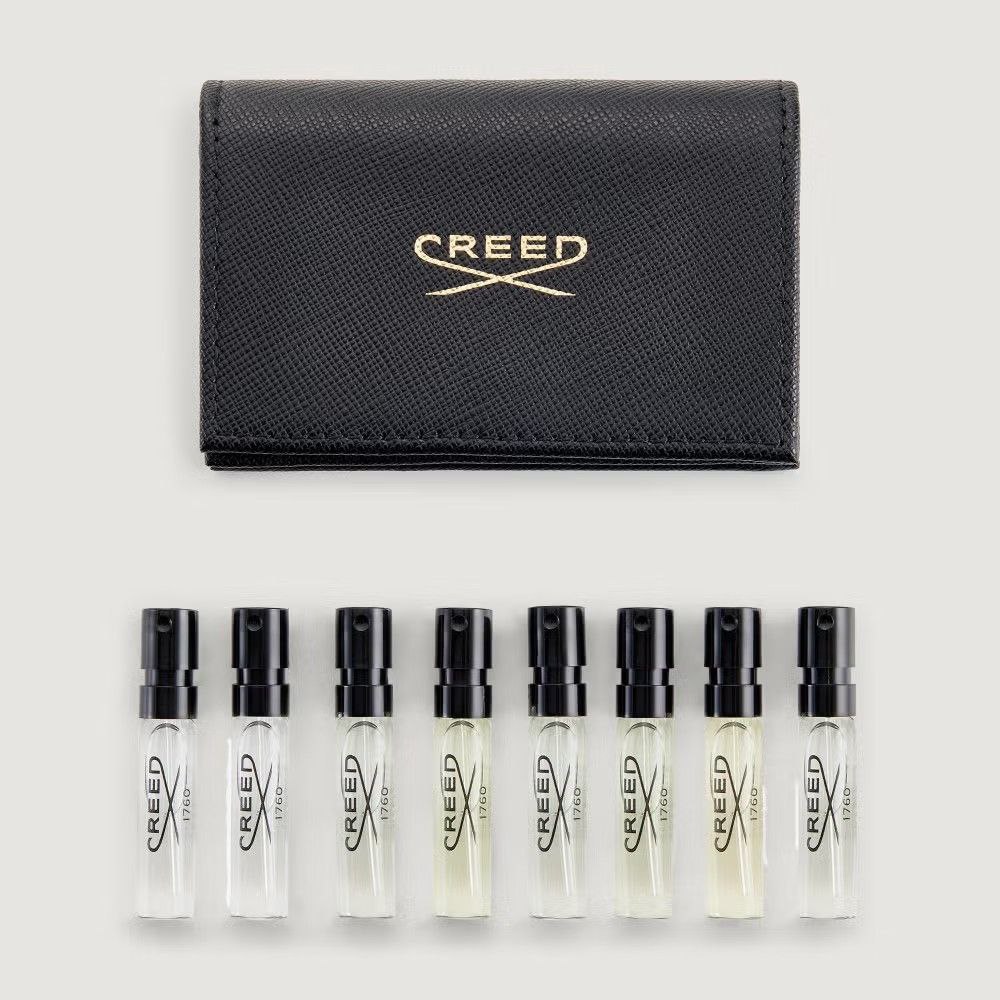Discover a little luxury with the House of Creed’s Leather Sample Wallet. Crafted out of the finest Italian leather and topped with the House of Creed’s iconic gold logo, this leather wallet is filled with eight sample vials for men. Sleek and streamlined, this Saffiano leather wallet is perfect for carrying your business cards or credit cards, a cherished luxury accessory that you can keep forever with its soft leather outer honouring the brand’s 260-year craftsmanship legacy.