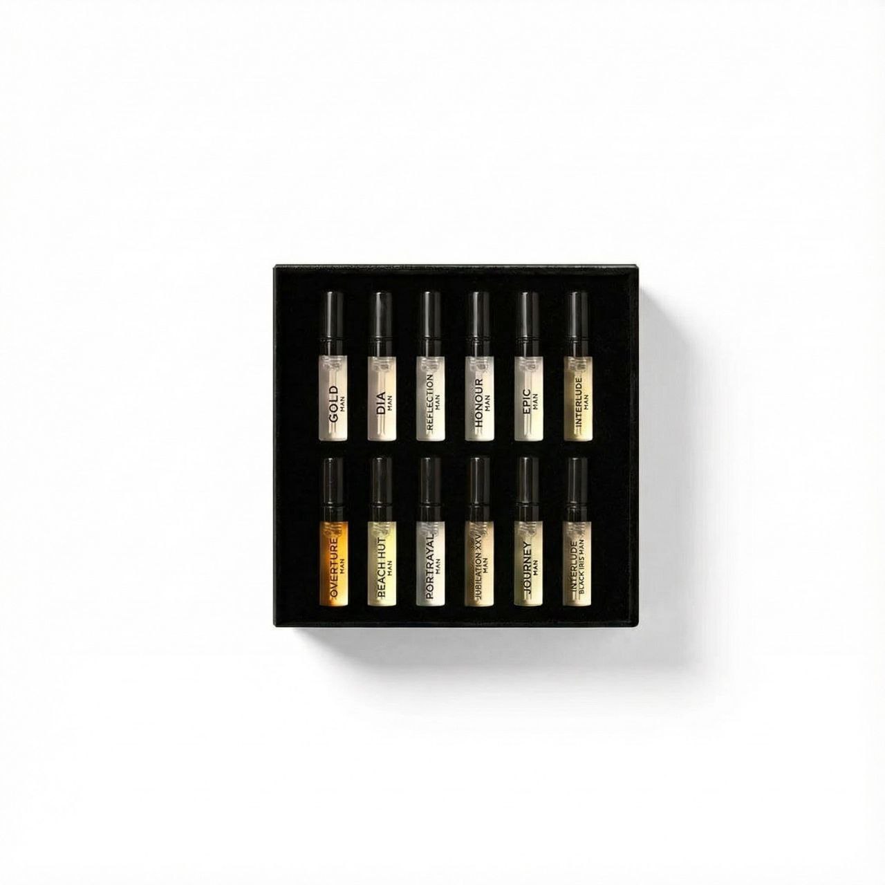 An online exclusive discovery sampler set, containing twelve spray samples of the House of Amouage’s Men’s Collection. The curated selection includes: Gold Man, Dia Man, Reflection Man, Honour Man, Epic Man, Interlude Man, Overture Man, Beach Hut Man, Portrayal Man, Jubilation XXV Man, Journey Man and Interlude Black Iris Man.