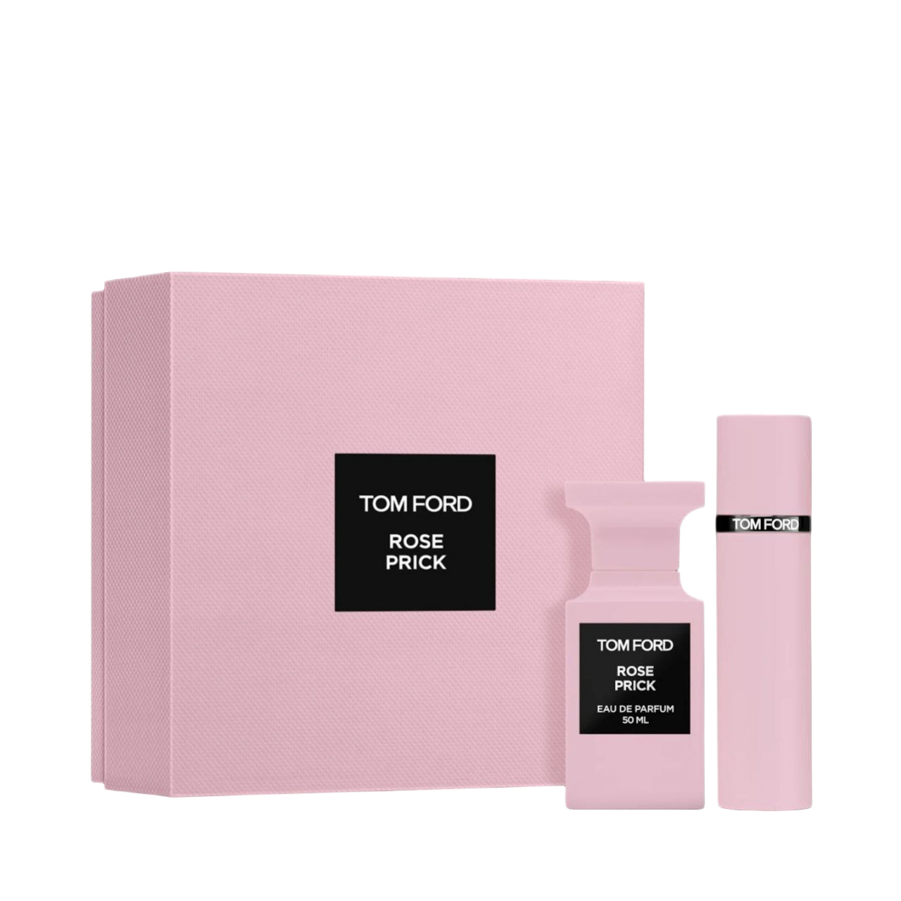 The gift of Rose Prick. A wild bouquet of precious rose essences pierced by the sharpness of patchouli and spice. This gift set features 50mL eau de parfum bottle and 10mL travel spray.