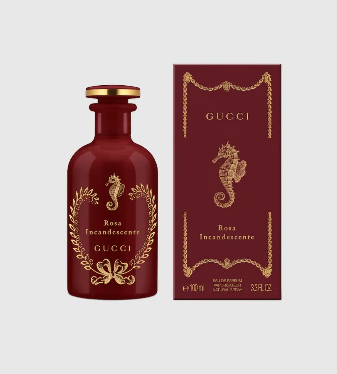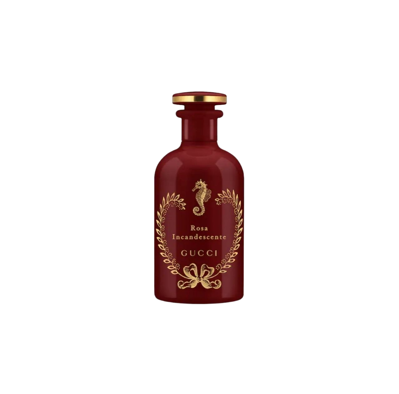 Inspired by the first perfumery containers from antique apothecaries, the Rosa Incandescente Eau de Parfum is encased in a red glass flacon, adorned with a seahorse.
