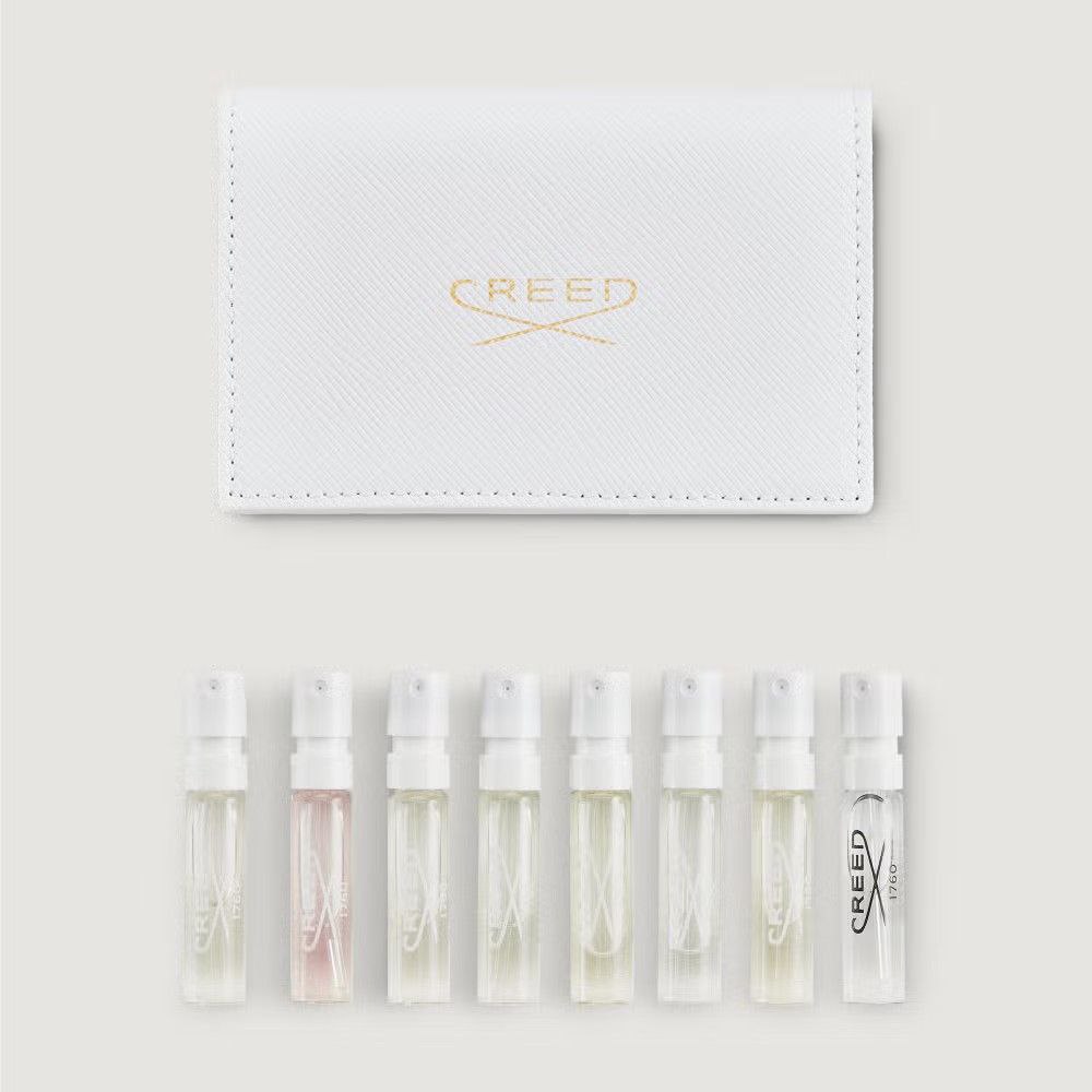 Discover a little luxury with the House of Creed’s Leather Sample Wallet. Crafted out of the finest Italian leather and topped with the House of Creed’s iconic gold logo, this leather wallet is filled with eight sample vials for men. Sleek and streamlined, this Saffiano leather wallet is perfect for carrying your business cards or credit cards, a cherished luxury accessory that you can keep forever with its soft leather outer honouring the brand’s 260-year craftsmanship legacy.